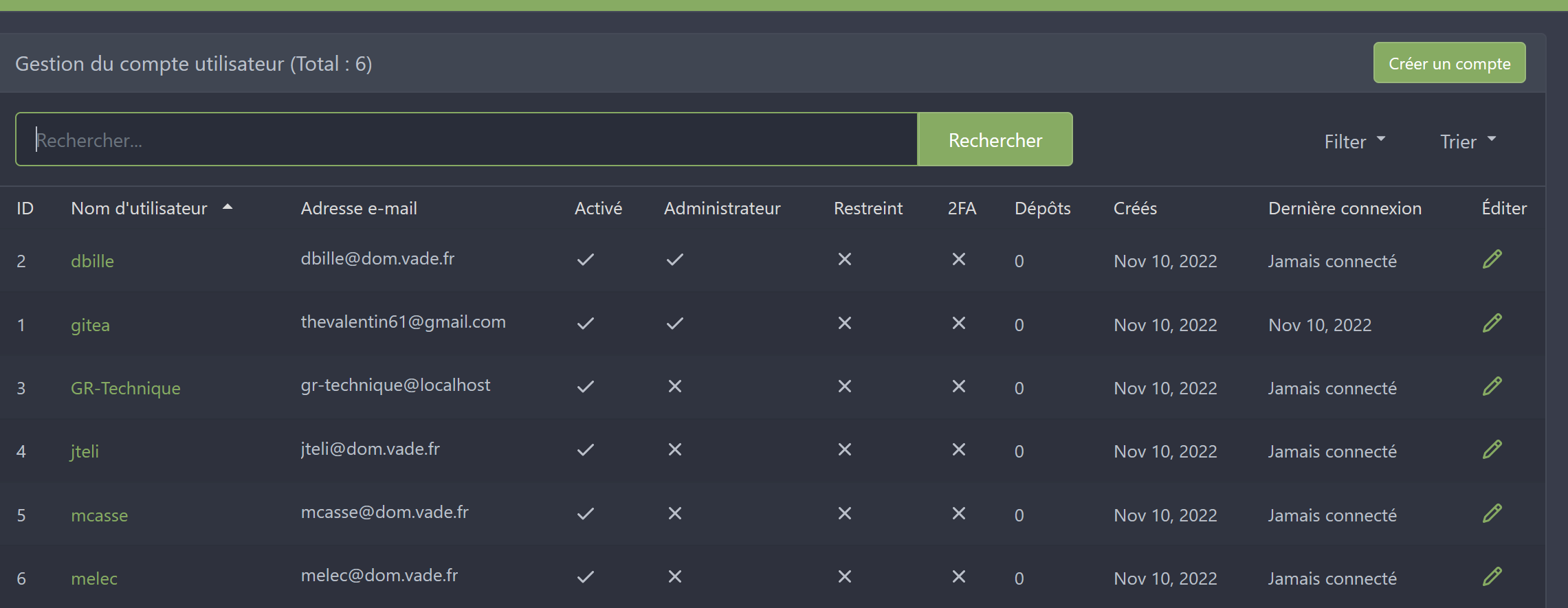 En raison des restrictions dans les ACL et de pages cachées, cette liste peut ne pas être complète.